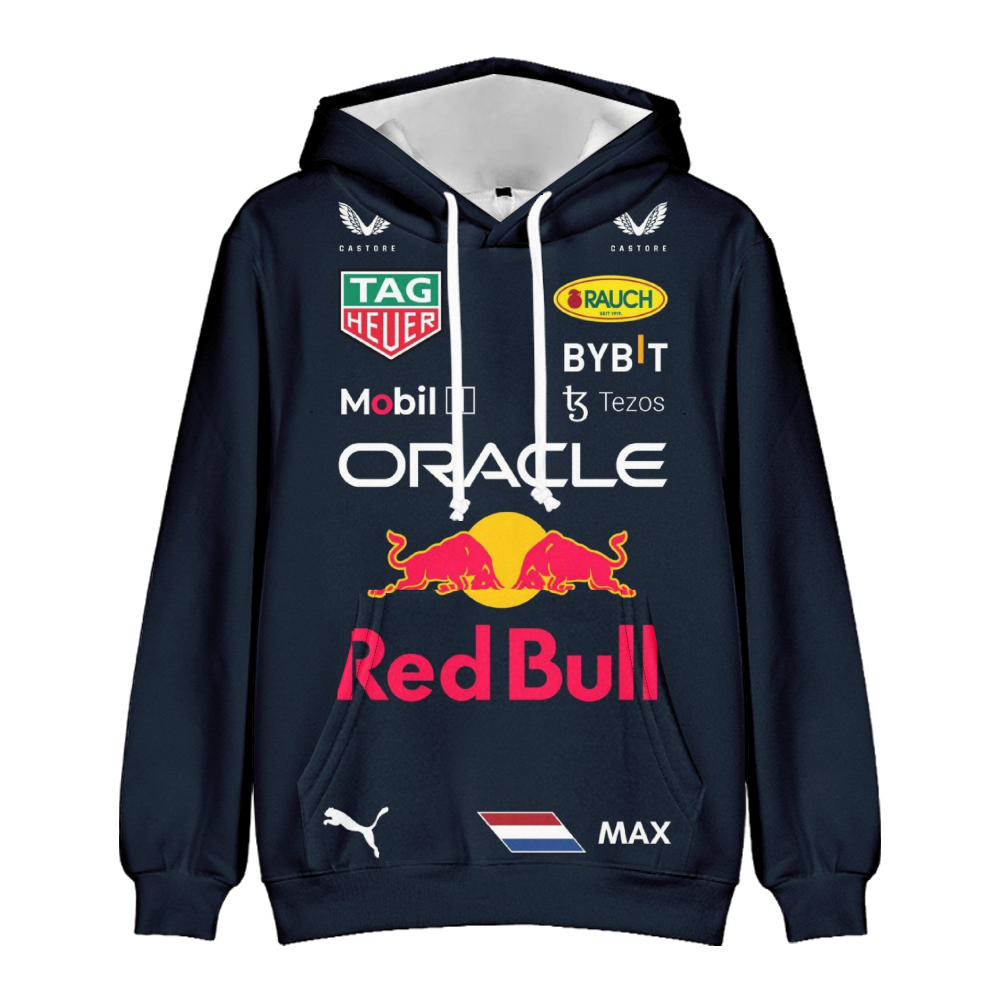 Bluza 3D Max Verstappen Red Bull Racing to wyjątkowa odzież dla prawdziwych fanów wyścigów i emocji torowych. Dynamiczny nadruk przedstawiający kierowcę, jego bolid oraz lata mistrzowskich tytułów (2021–2024) nadaje bluzie sportowego charakteru i energii.