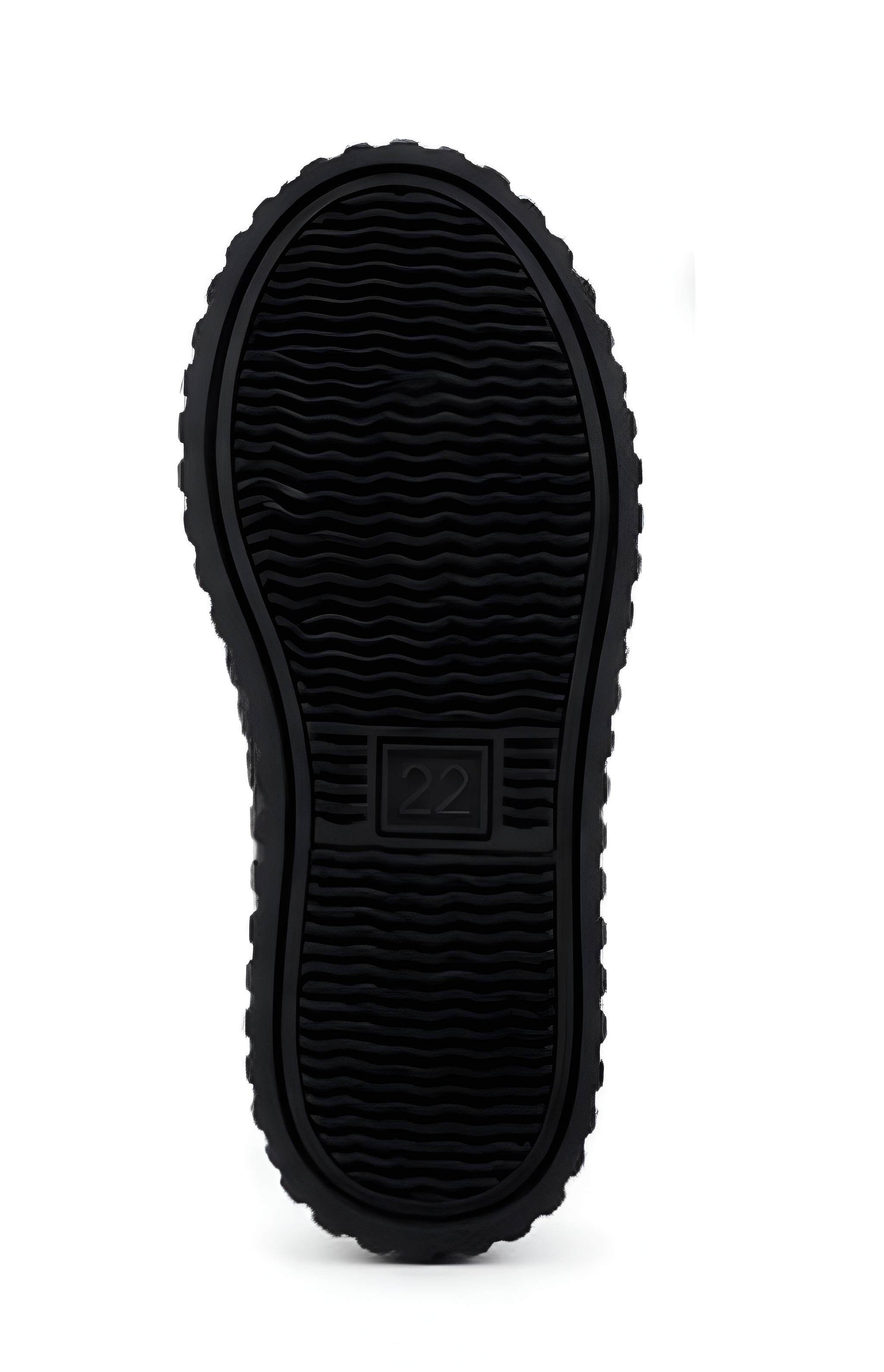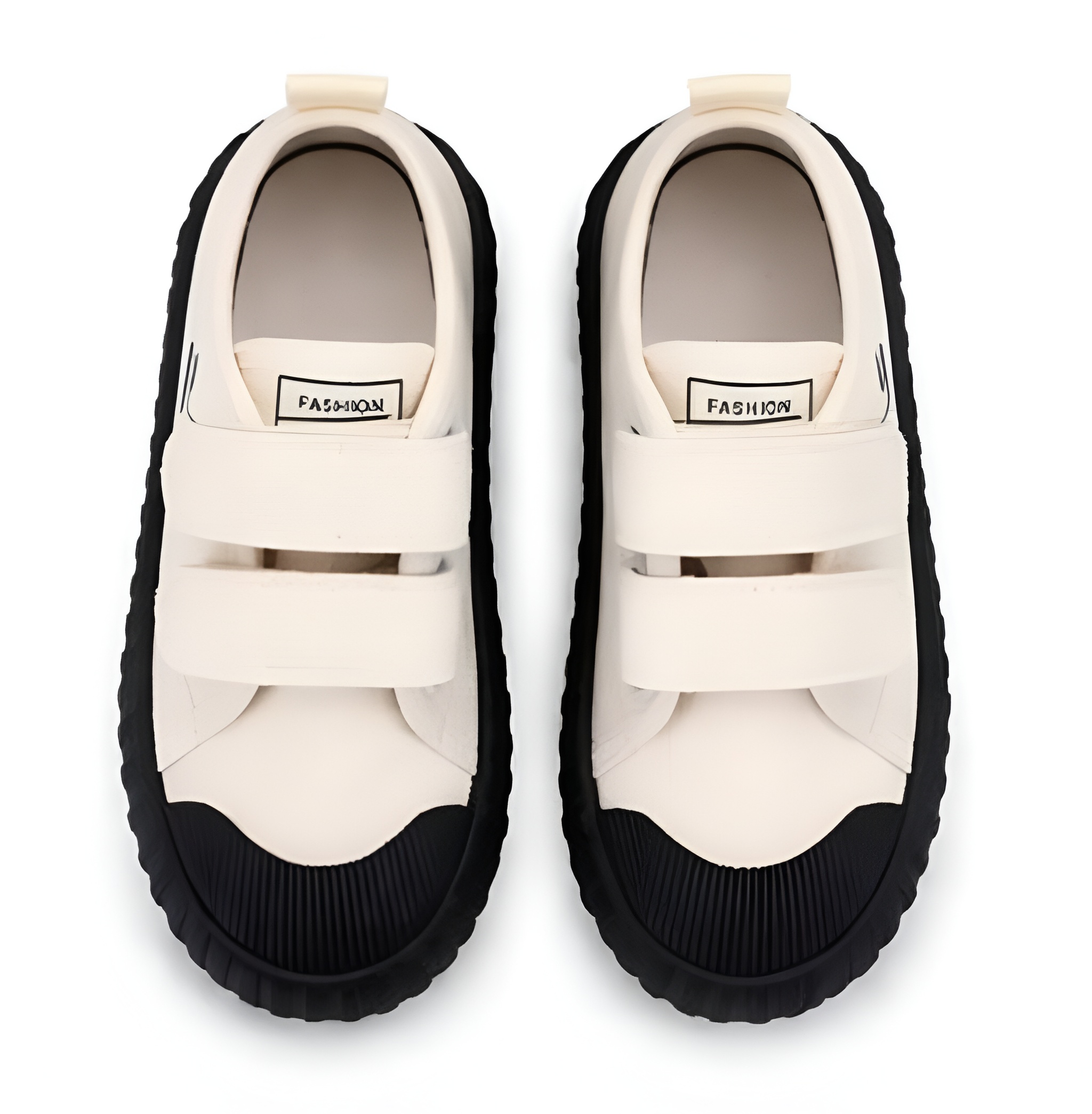 Stylowe i wygodne buty dziecięce w formie sneakersów, zaprojektowane z myślą o codziennym użytkowaniu. Połączenie białej cholewki z charakterystyczną czarną, antypoślizgową podeszwą nadaje im nowoczesny i wyróżniający się wygląd. Zapięcie na rzepy ułatwia szybkie zakładanie i zdejmowanie, co sprawia, że są idealne dla najmłodszych.