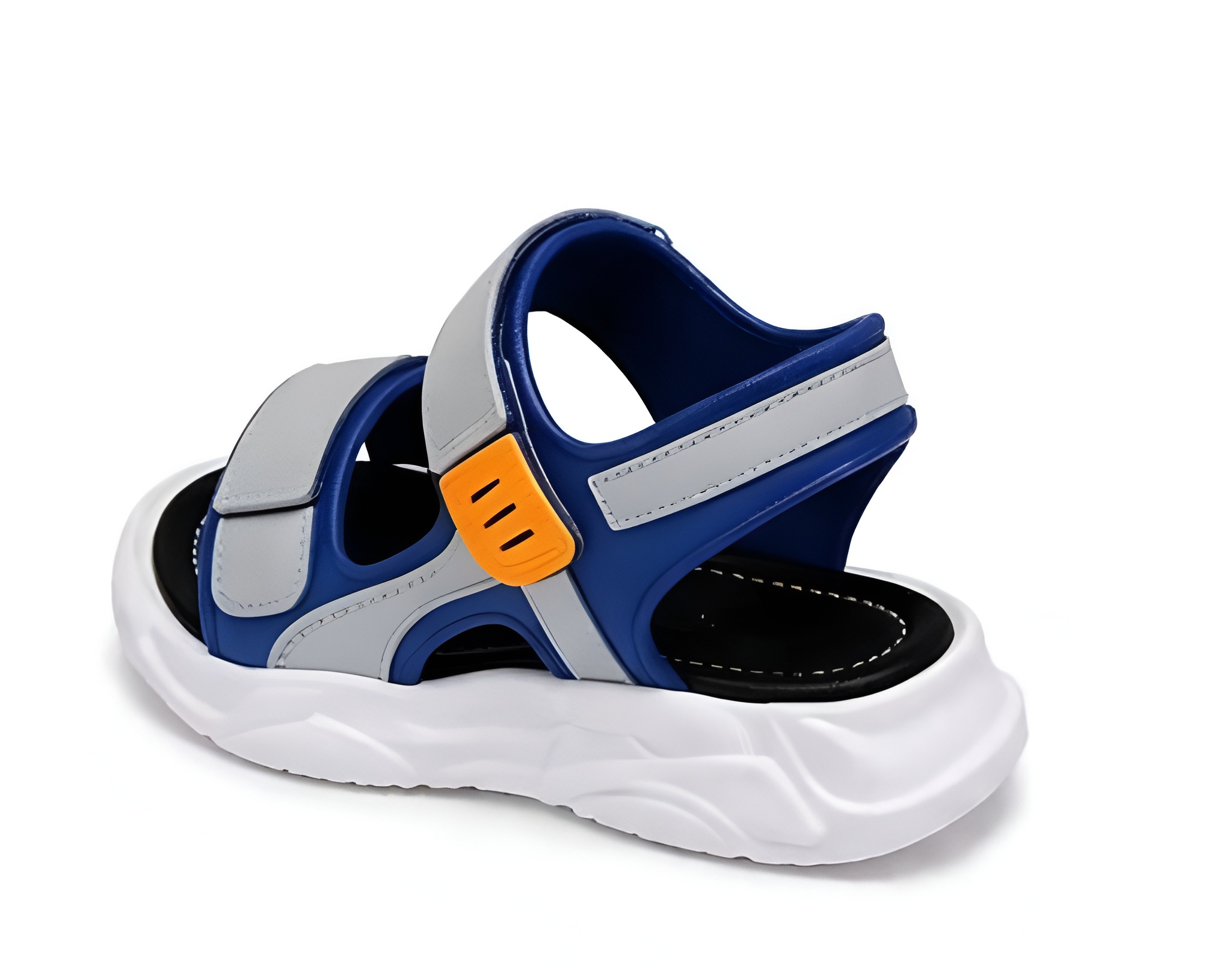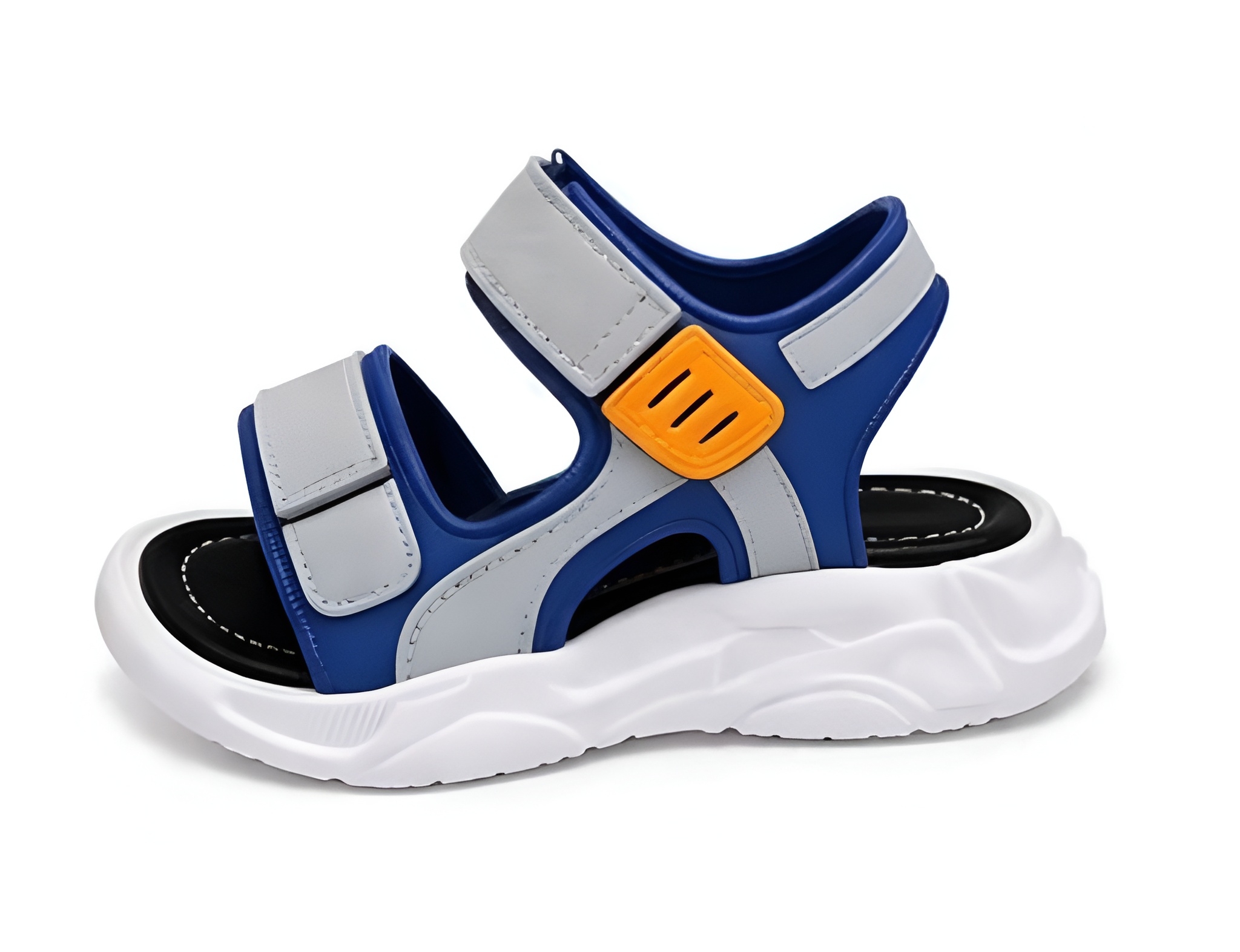 Praktyczne sandały dziecięce w nowoczesnym połączeniu niebieskiego i szarego koloru. Zapewniają komfort, stabilność oraz bezpieczeństwo podczas codziennych aktywności. Idealne na lato – lekkie, przewiewne i łatwe w użytkowaniu.