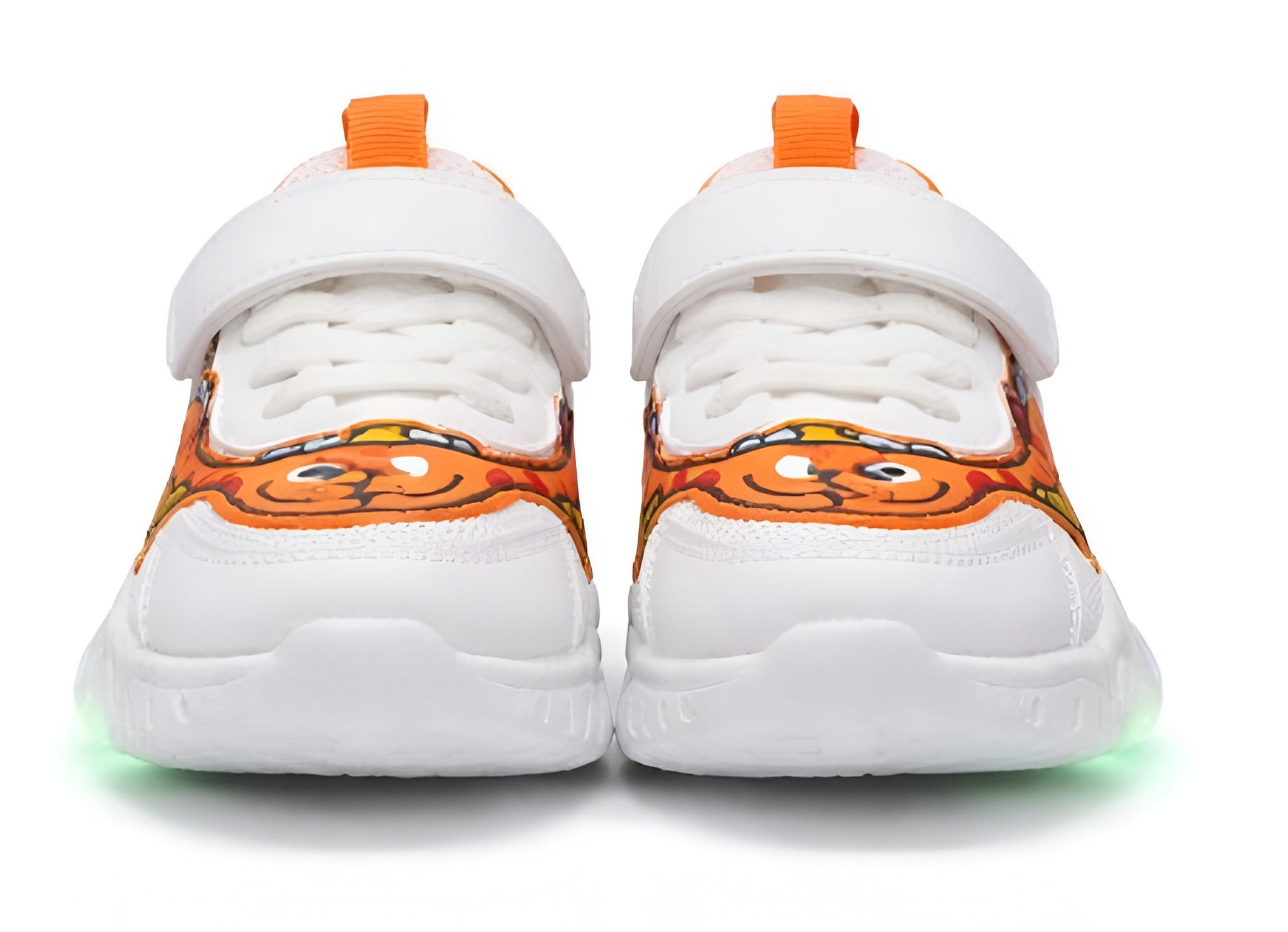 Pomarańczowe świecące buty dziecięce LED Dino to efektowne sneakersy stworzone dla dzieci, które kochają kolorowe wzory i dynamiczny styl. Model przyciąga uwagę oryginalnym motywem dinozaura oraz wielokolorową podświetlaną podeszwą LED, która świeci podczas chodzenia, dodając każdemu krokowi wyjątkowego efektu.