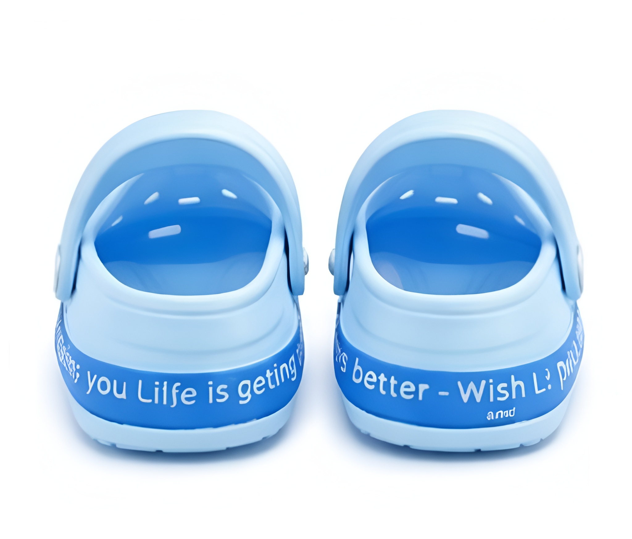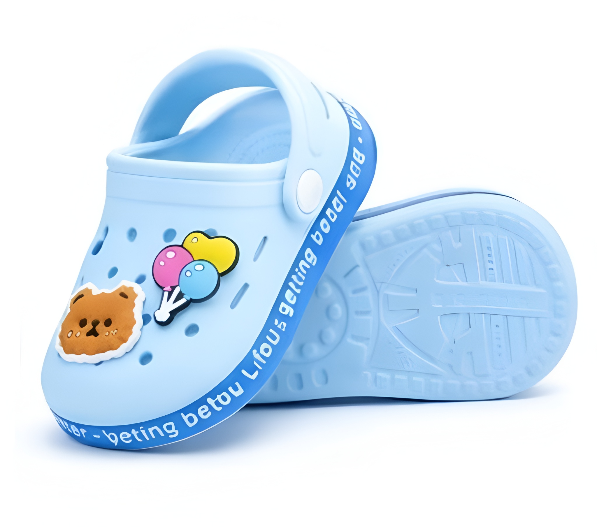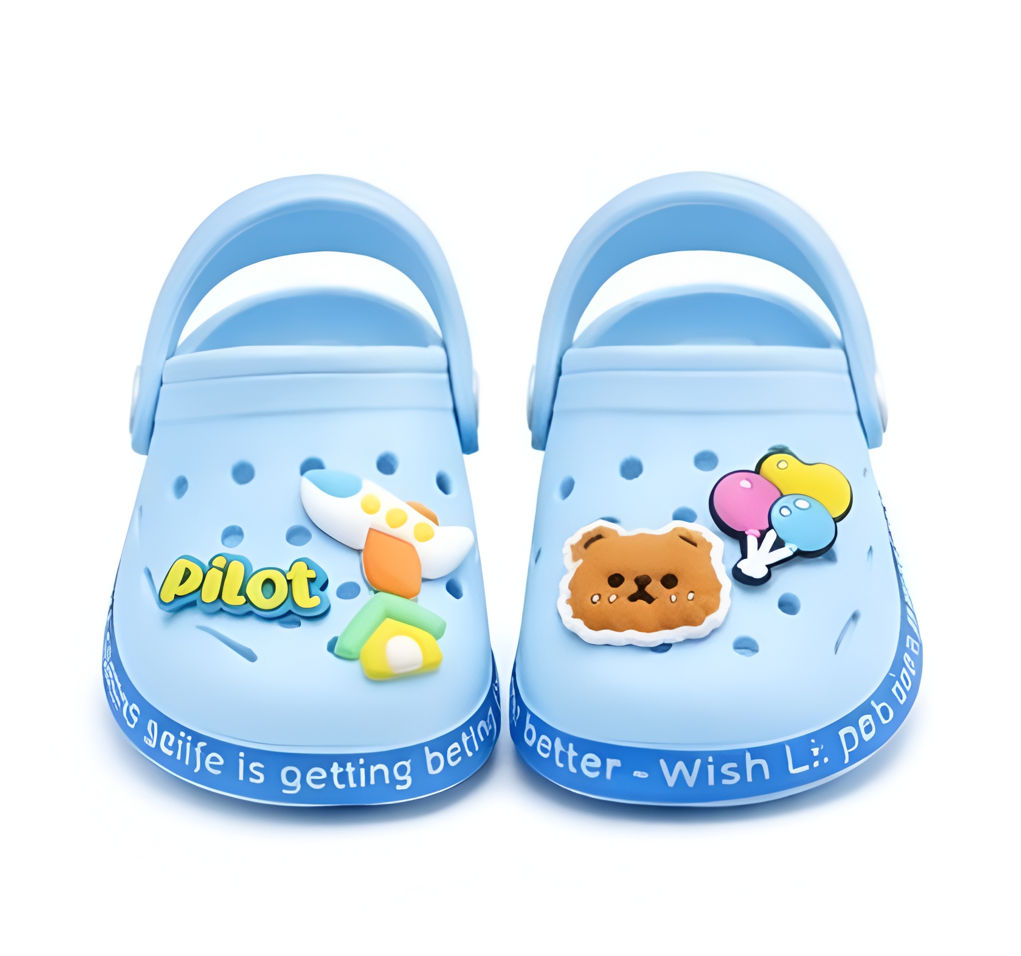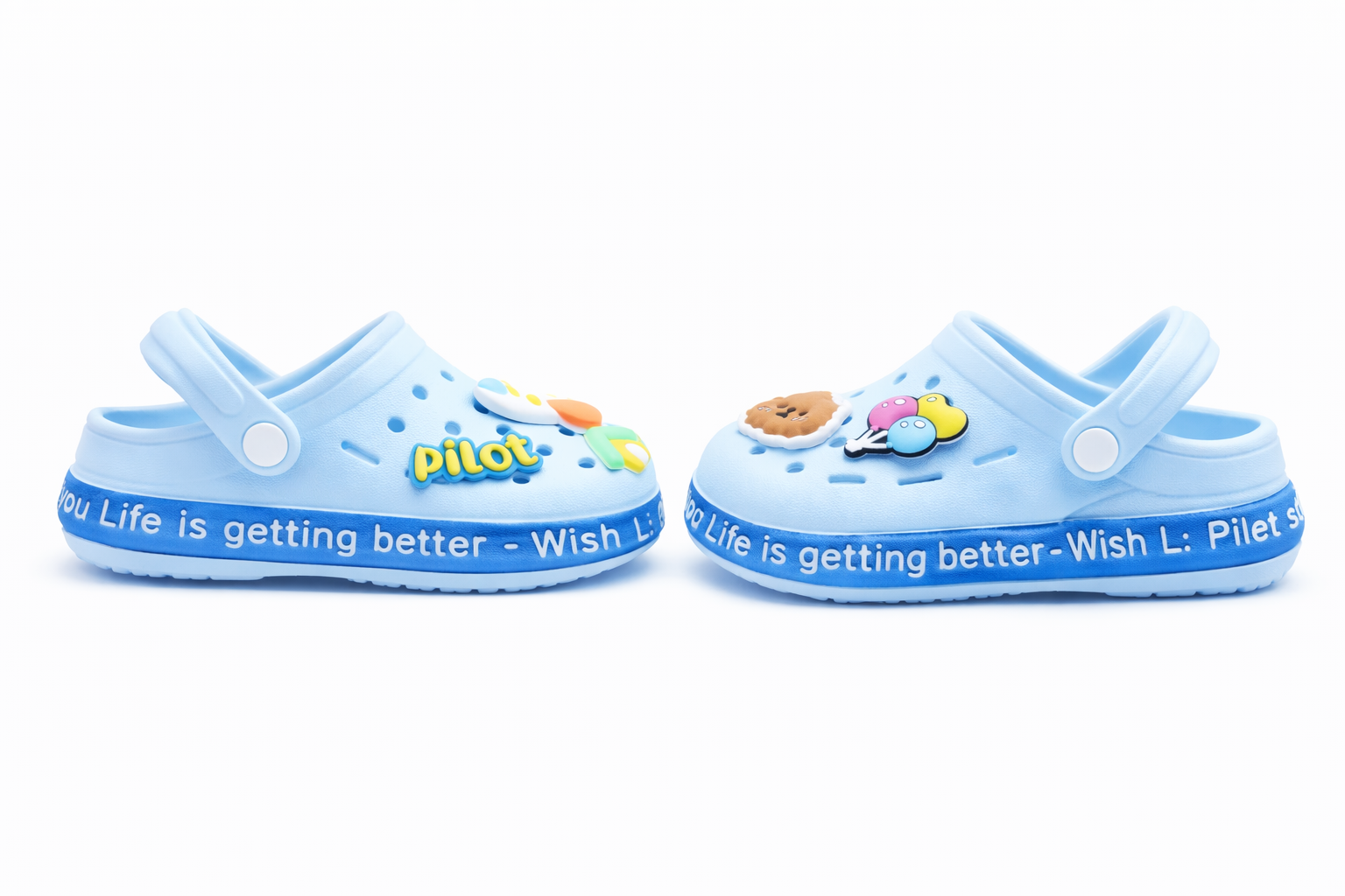 Kolorowe błękitne klapki dziecięce ogrodowe to idealne obuwie na lato dla najmłodszych. Wykonane z lekkiej i miękkiej pianki EVA zapewniają komfort noszenia przez cały dzień. Model wyróżnia się uroczym designem z dekoracyjnymi przypinkami, które nadają butom wyjątkowy, dziecięcy charakter.