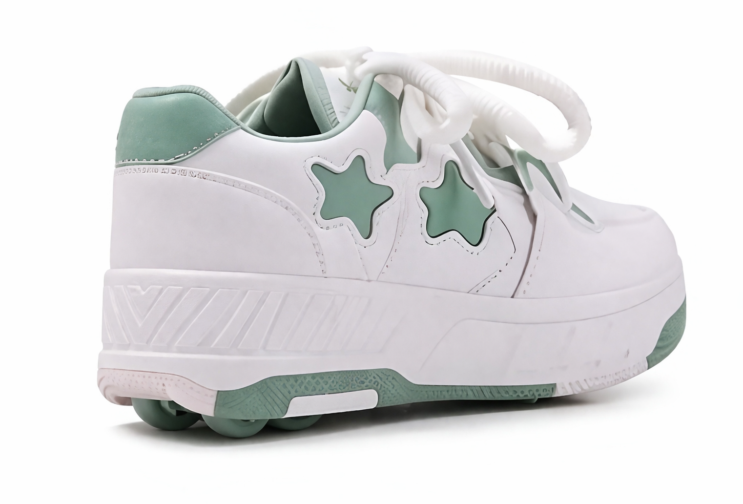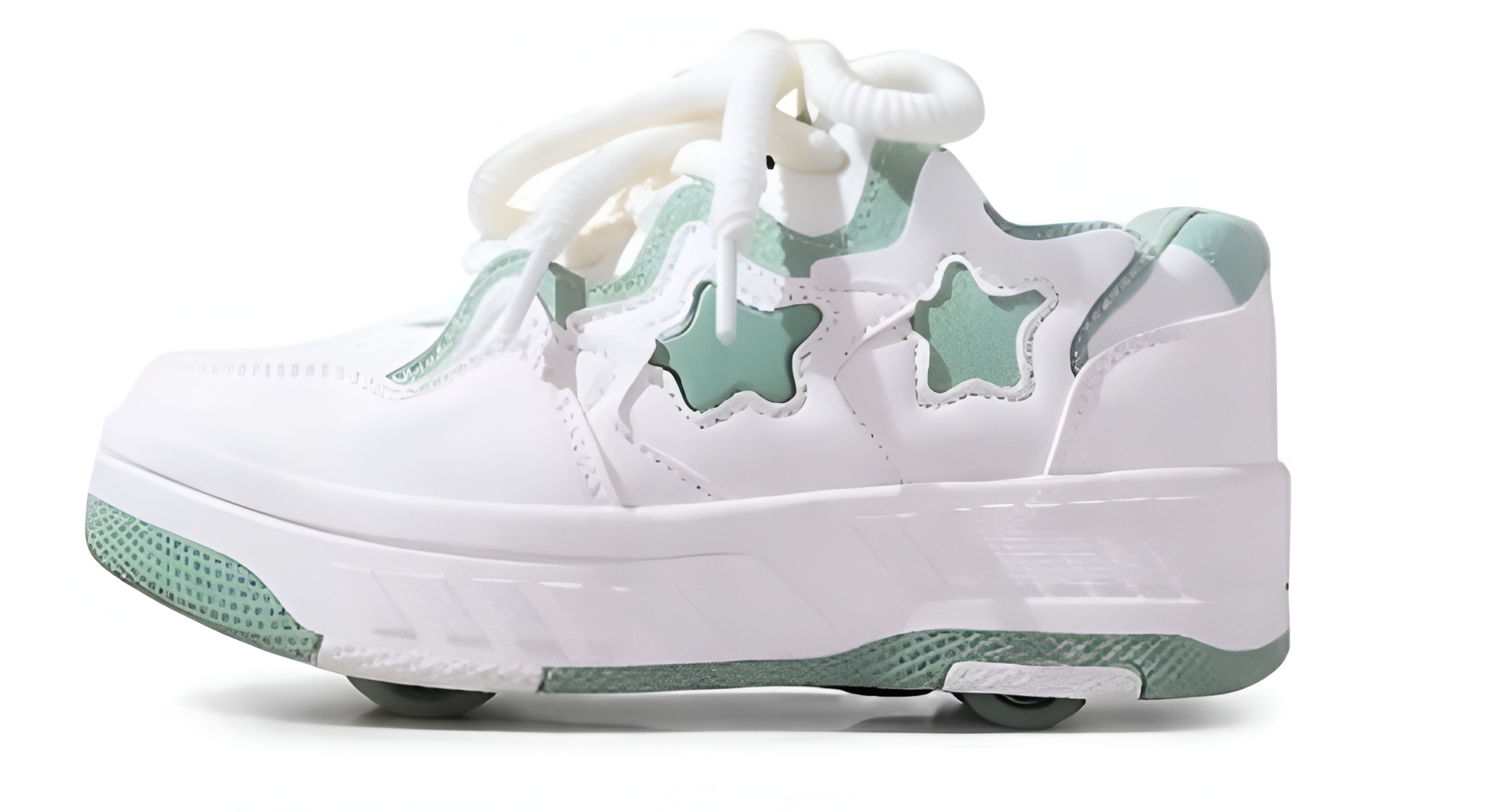 Nowoczesne butorolki dziecięce to funkcjonalne obuwie 2w1, które łączy wygodę codziennych butów ze świetną zabawą na kółkach. Stylowy biało-miętowy design z motywem gwiazdek sprawia, że model przyciąga uwagę i idealnie wpisuje się w aktualne trendy dziecięcej mody.