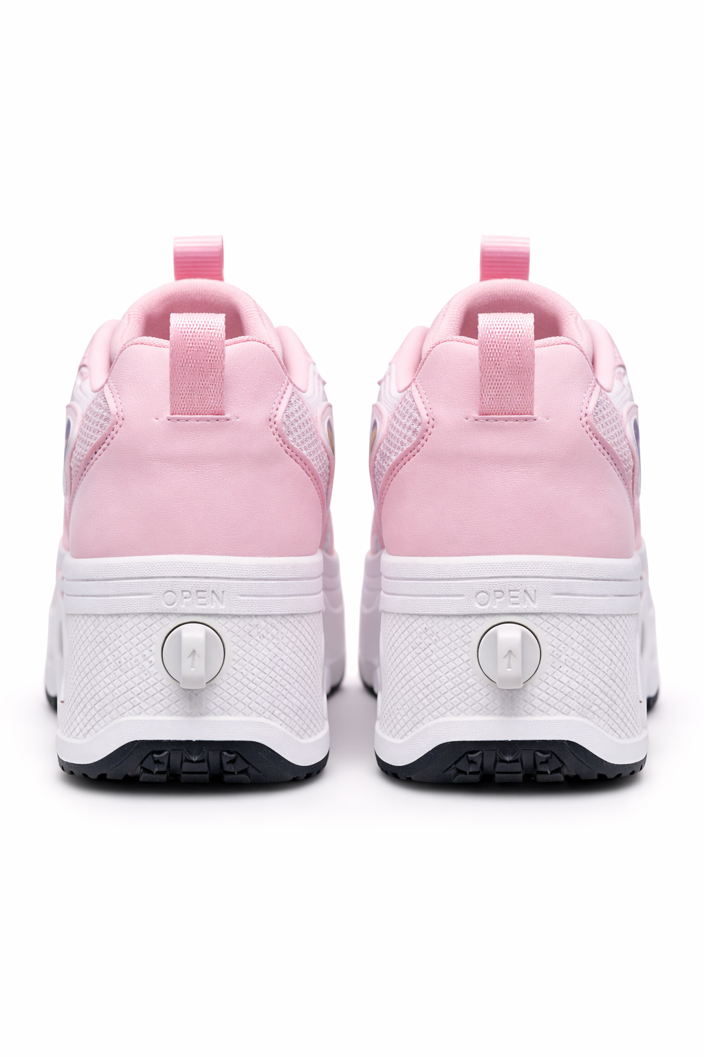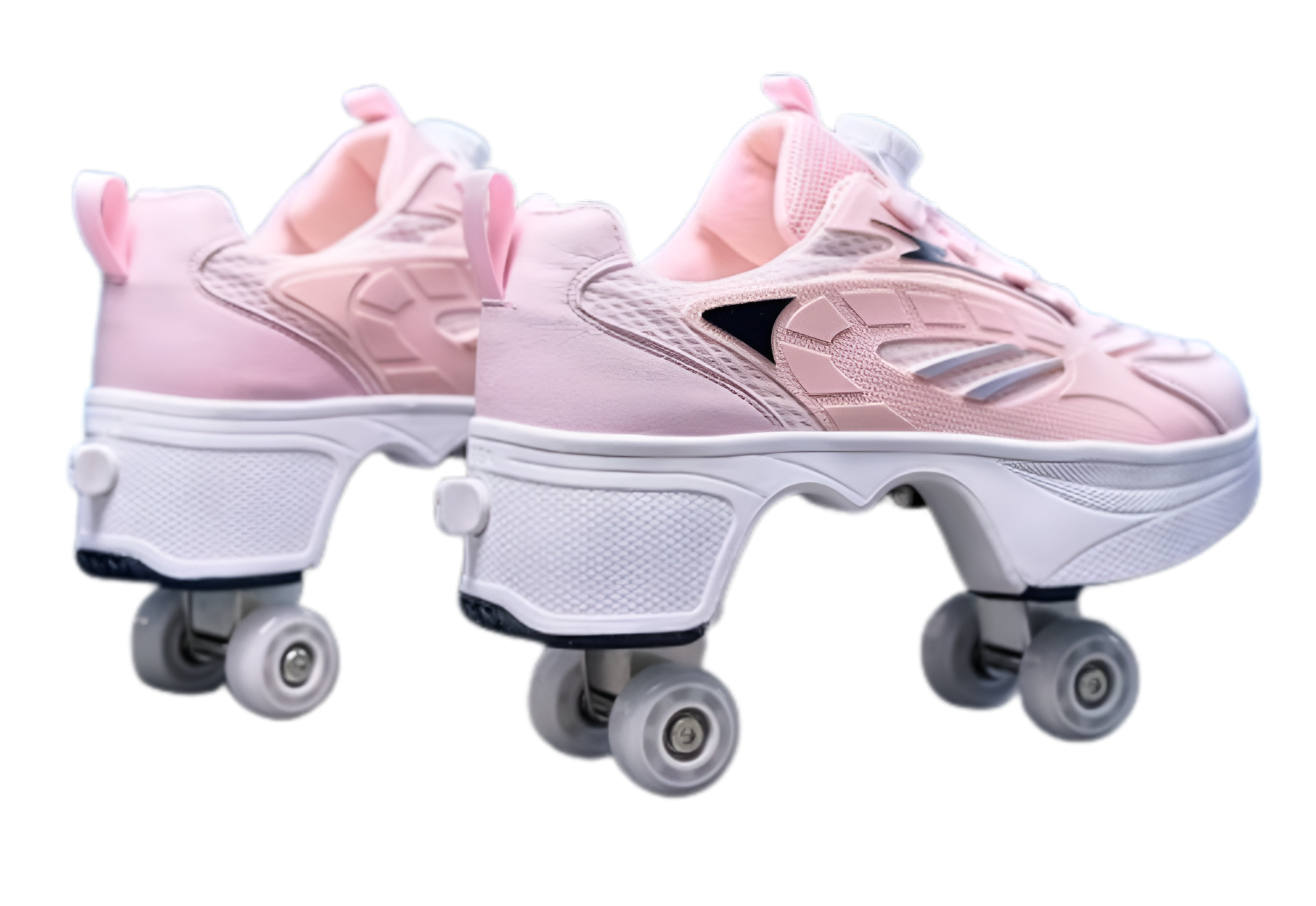 Nowoczesne buty na kółkach 2w1 łączą wygodę codziennego obuwia sportowego z funkcją jazdy rekreacyjnej. Model widoczny na zdjęciu to stylowe różowe rolkobuty wyposażone w stabilne podwójne kółka oraz solidną, podwyższoną podeszwę zapewniającą komfort i bezpieczeństwo użytkowania. Idealne dla dzieci i młodzieży aktywnie spędzających czas.