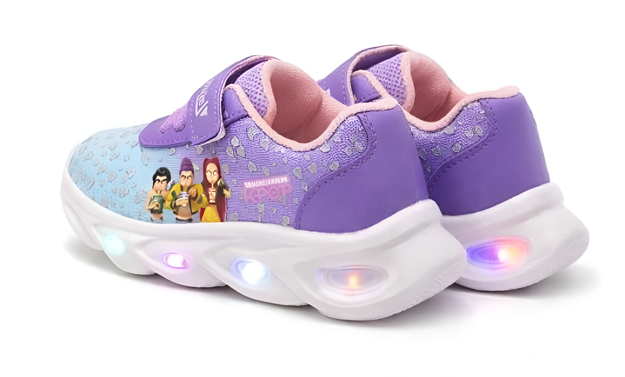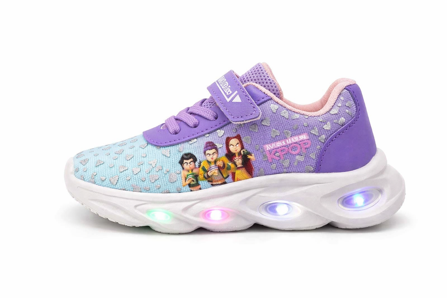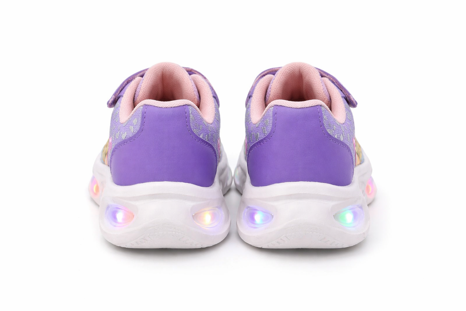 Nowoczesne buty sportowe dla dzieci z efektownym podświetleniem LED w podeszwie. Model łączy wygodę codziennego obuwia sportowego z atrakcyjnym designem, który przyciąga uwagę i sprawia, że każdy krok dziecka wygląda wyjątkowo. Dynamiczna kolorystyka oraz bajkowa grafika nadają butom oryginalnego charakteru, a świecąca podeszwa zwiększa widoczność po zmroku.