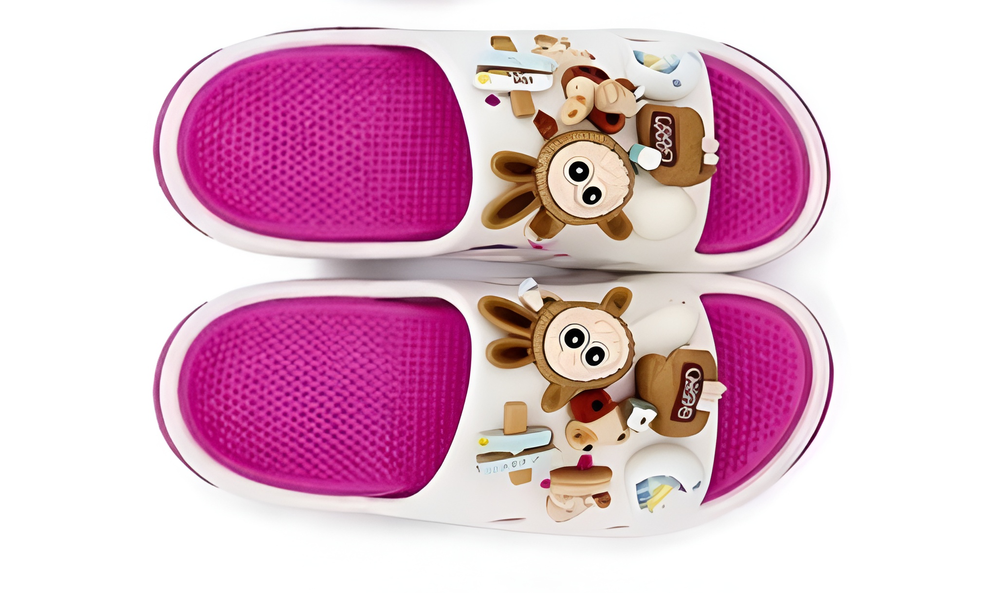 Kolorowe klapki dziecięce z uroczymi ozdobami 3D to idealne połączenie komfortu i atrakcyjnego designu dla najmłodszych. Model wyróżnia się miękką, amortyzującą podeszwą oraz przyjemną w dotyku wkładką w intensywnym różowym kolorze.