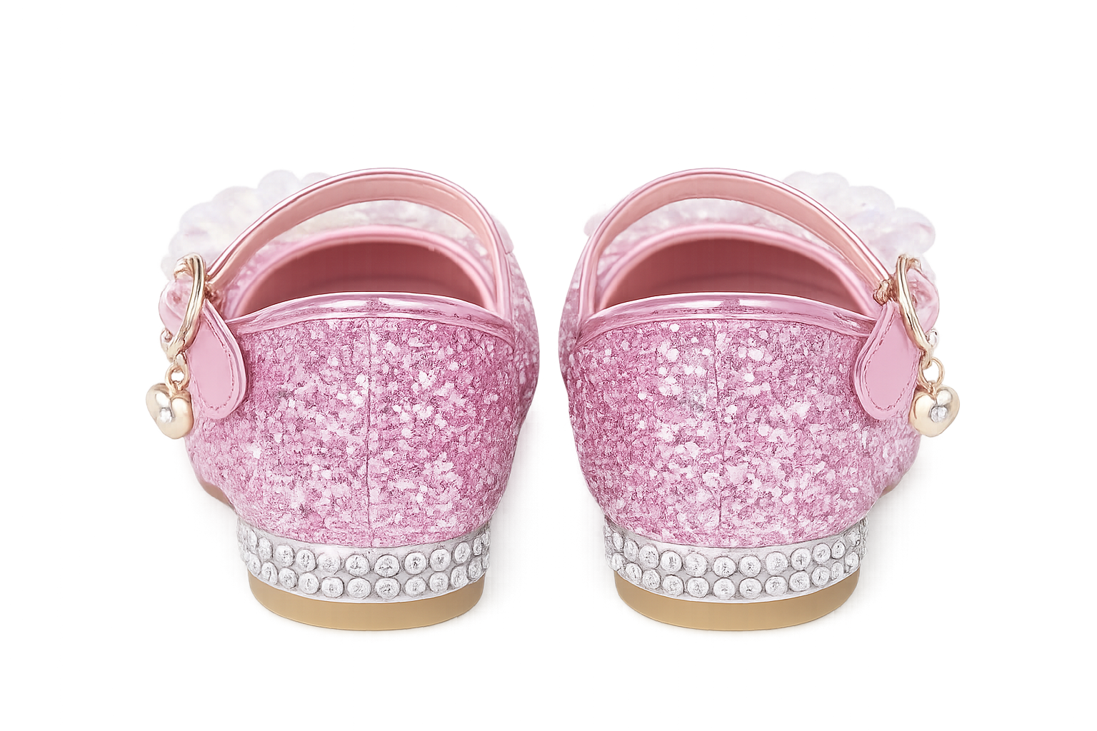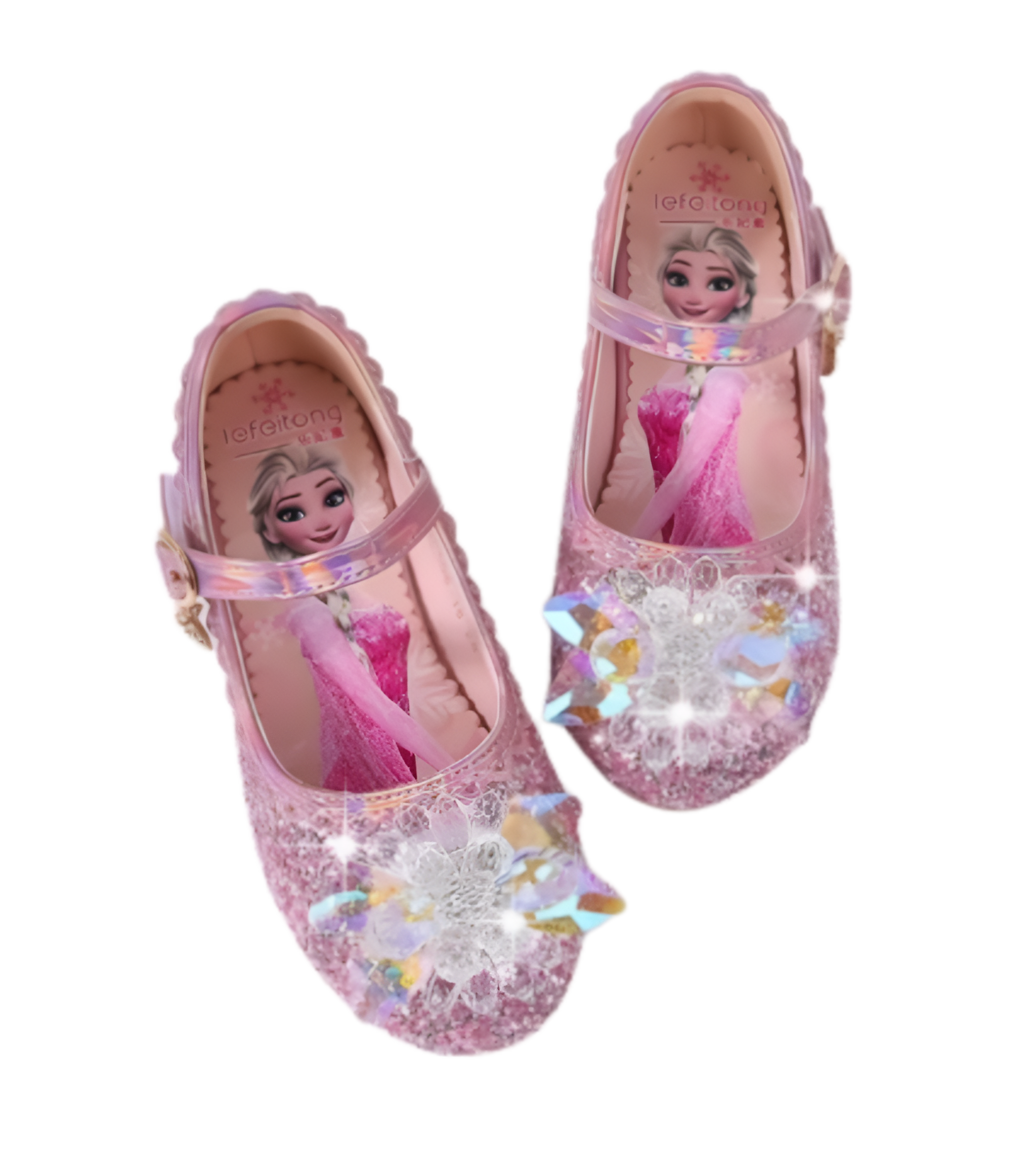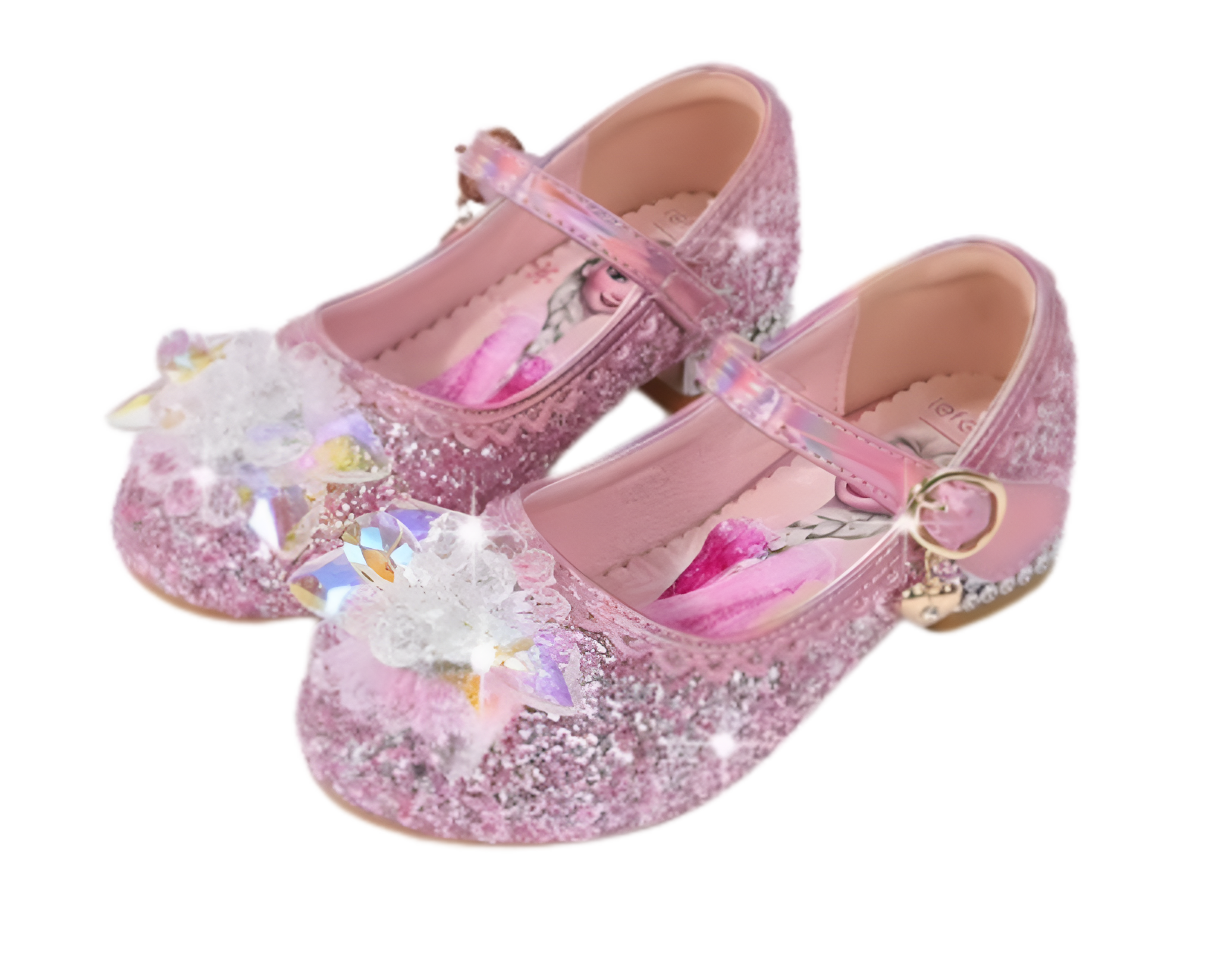 Efektowne baleriny dziewczęce w kolorze różowym z motywem Elsa z bajki Kraina Lodu. Połączenie błyszczącego brokatu, ozdobnej aplikacji oraz eleganckiego paska sprawia, że buty idealnie wpisują się w styl małej księżniczki. Doskonałe na wyjątkowe okazje oraz jako stylowy element codziennych stylizacji.