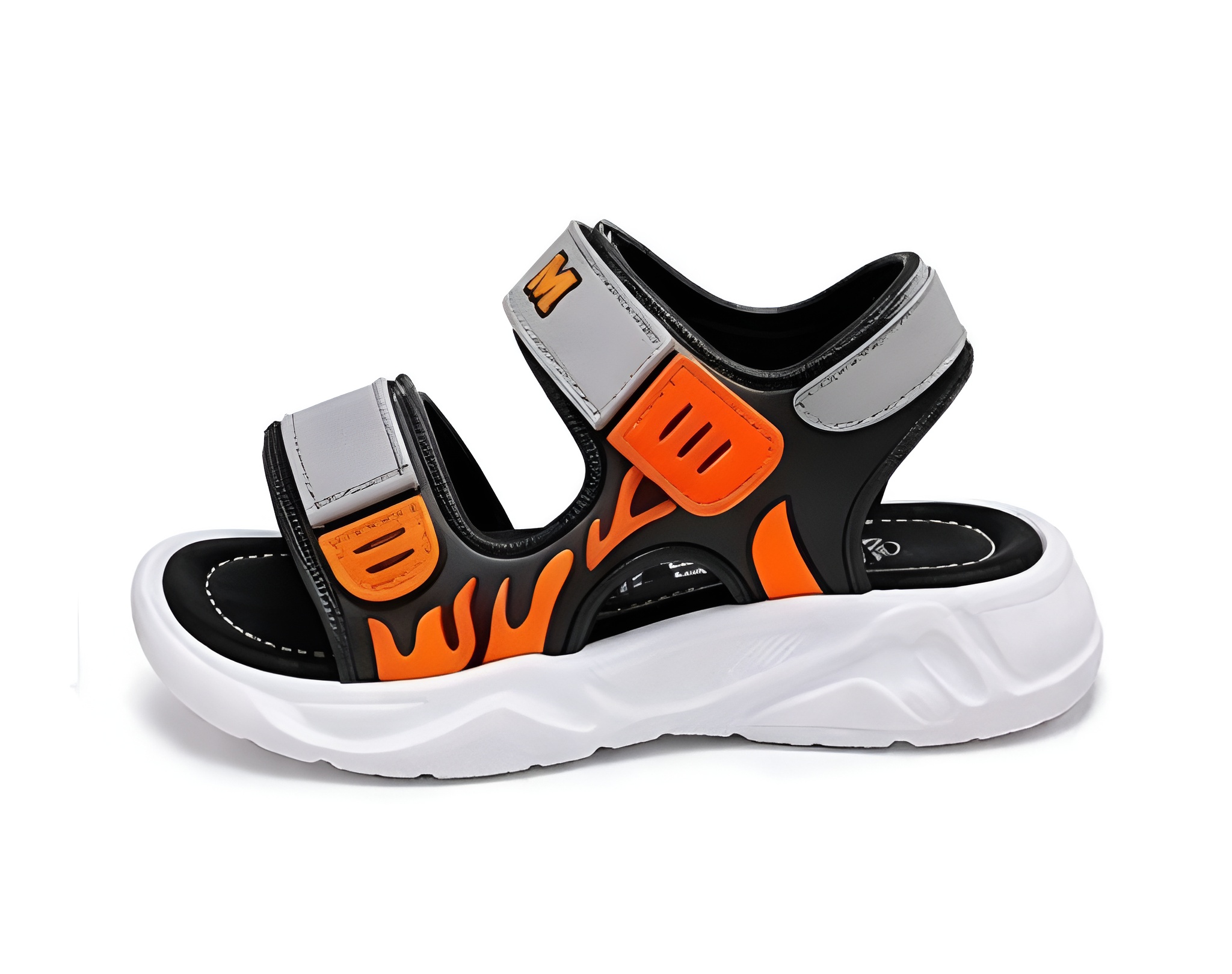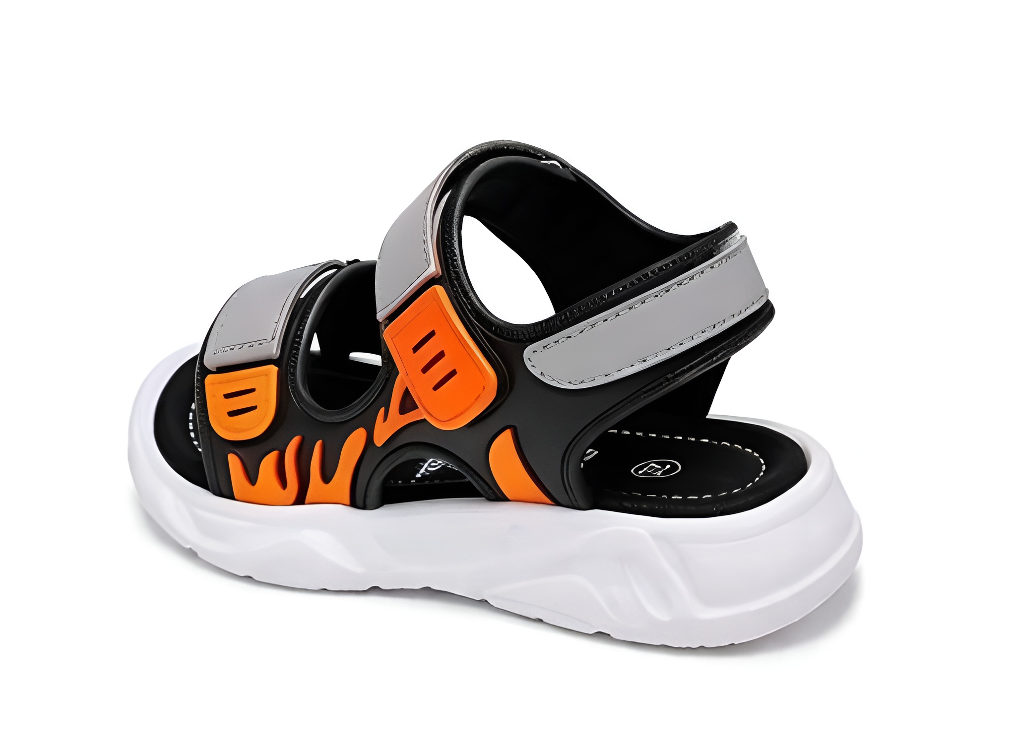 Nowoczesne sandały dziecięce w dynamicznym połączeniu szarości i pomarańczu. Zaprojektowane z myślą o aktywnych dzieciach – zapewniają komfort, stabilność i wygodę podczas codziennego użytkowania.