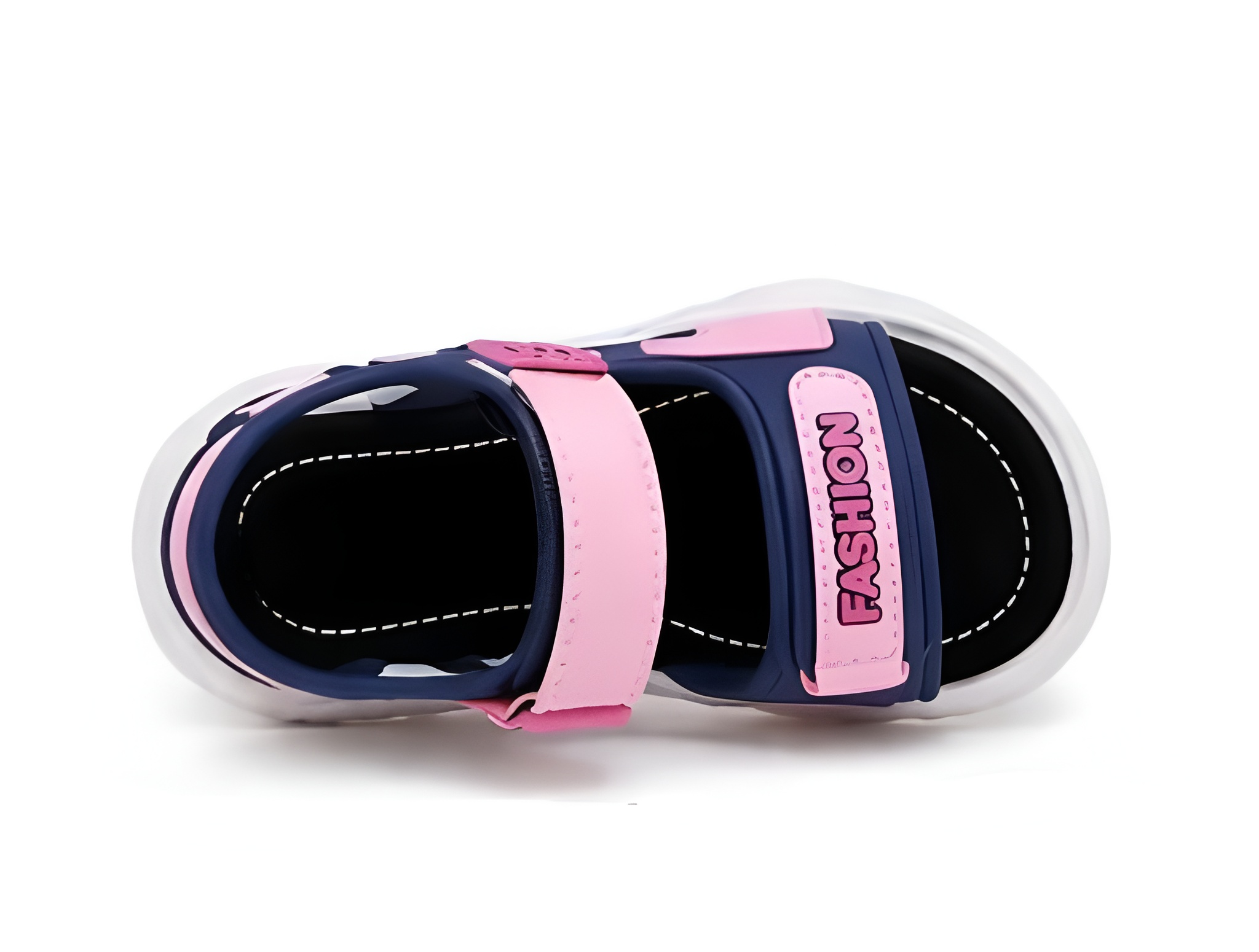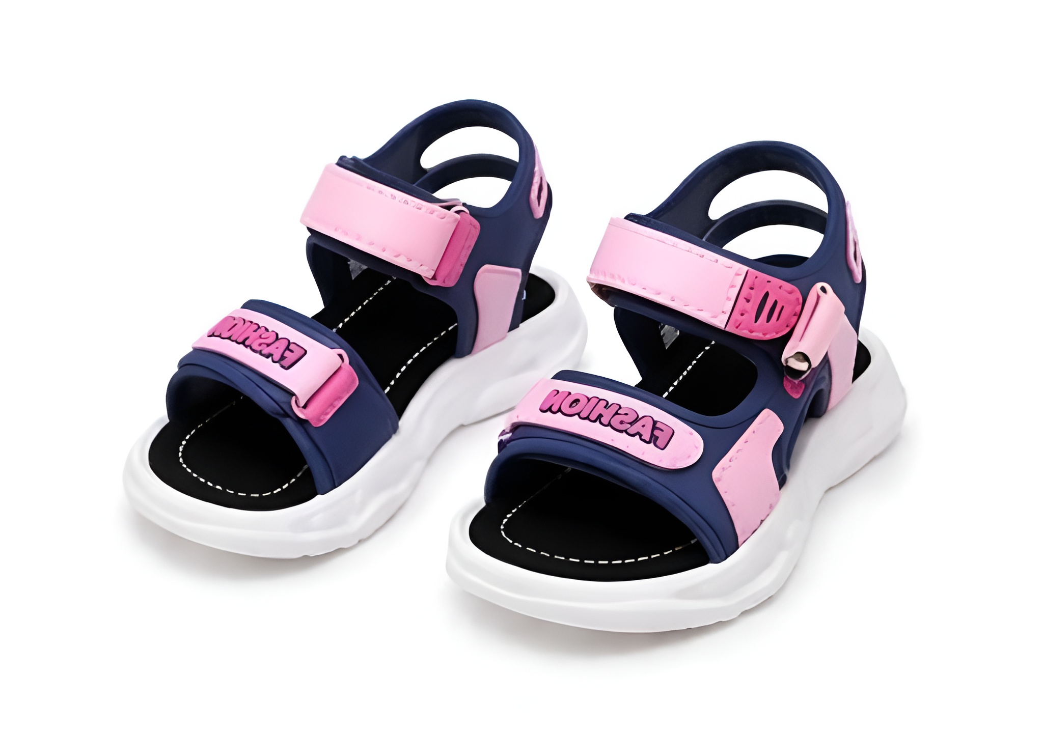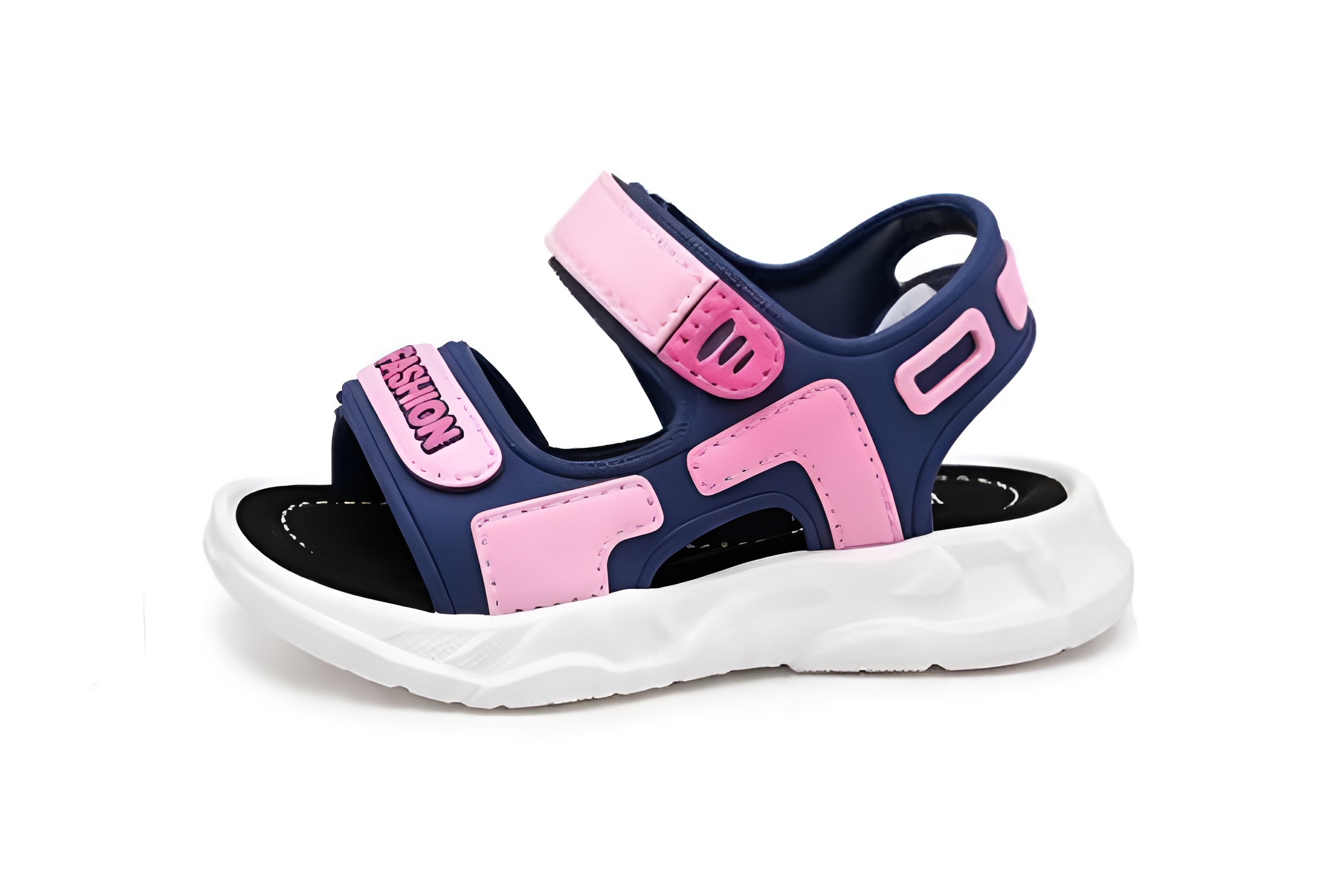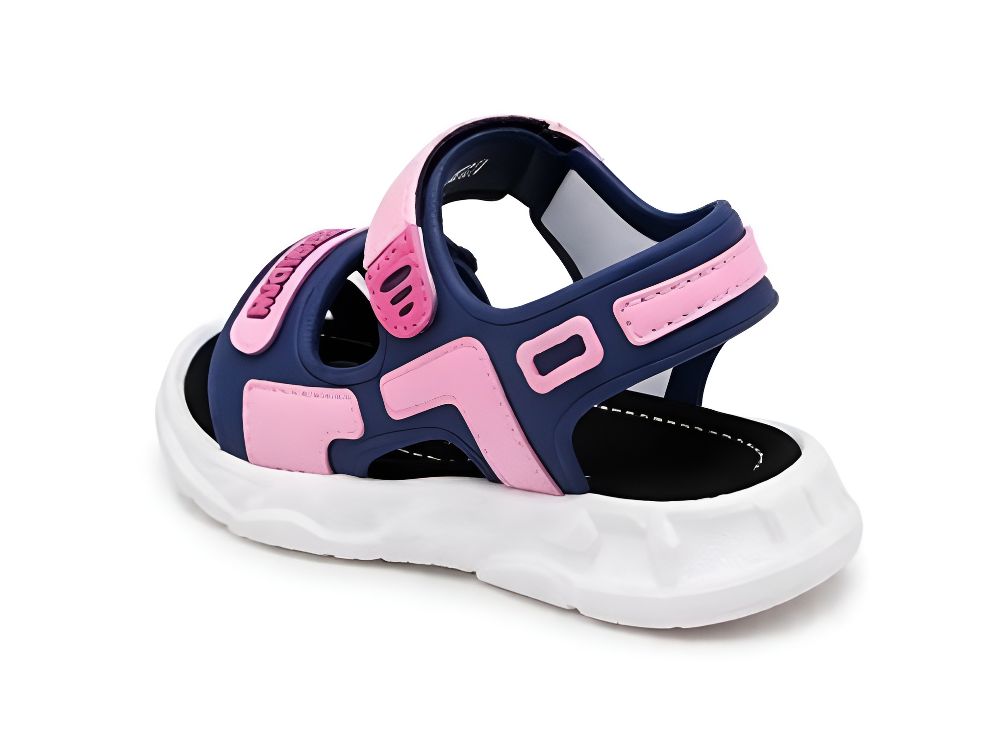 Stylowe sandały dziecięce w modnym połączeniu kolorów różowego i granatowego, zaprojektowane z myślą o komforcie i bezpieczeństwie podczas codziennych aktywności. Idealne na lato – lekkie, przewiewne i łatwe w użytkowaniu.