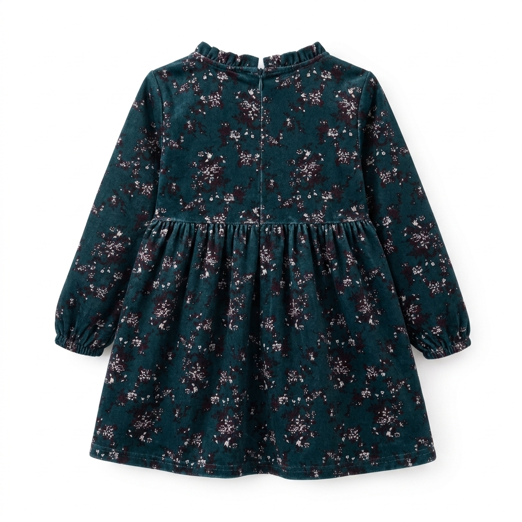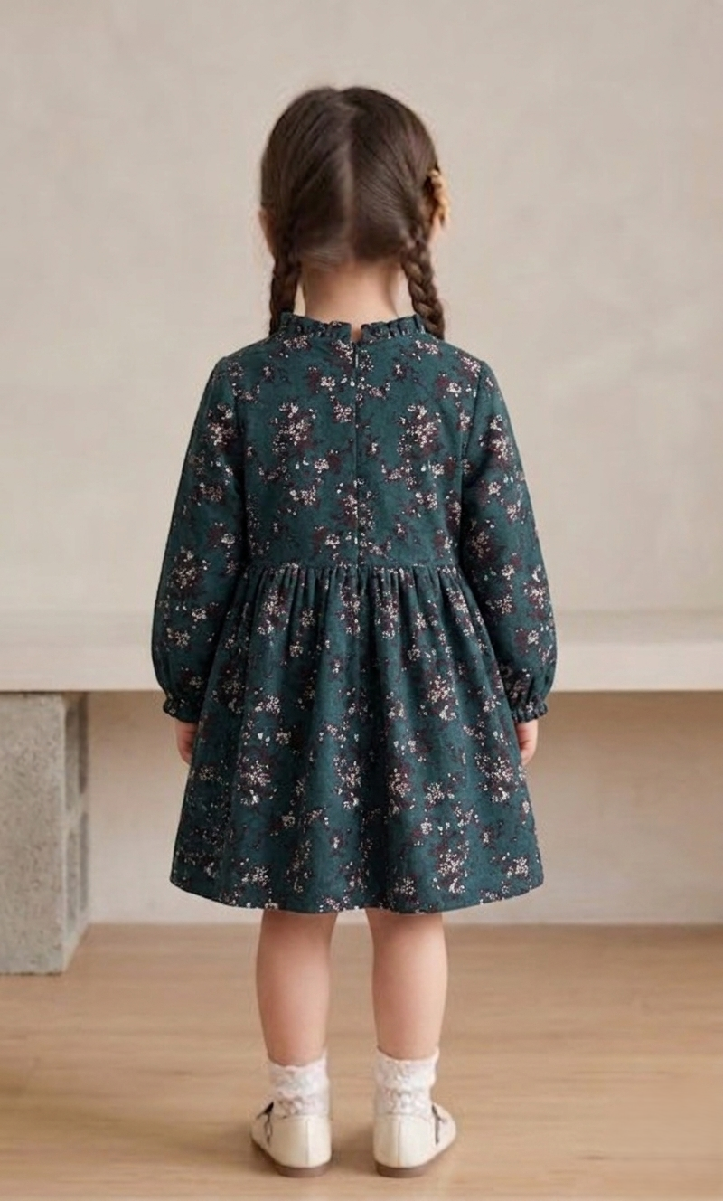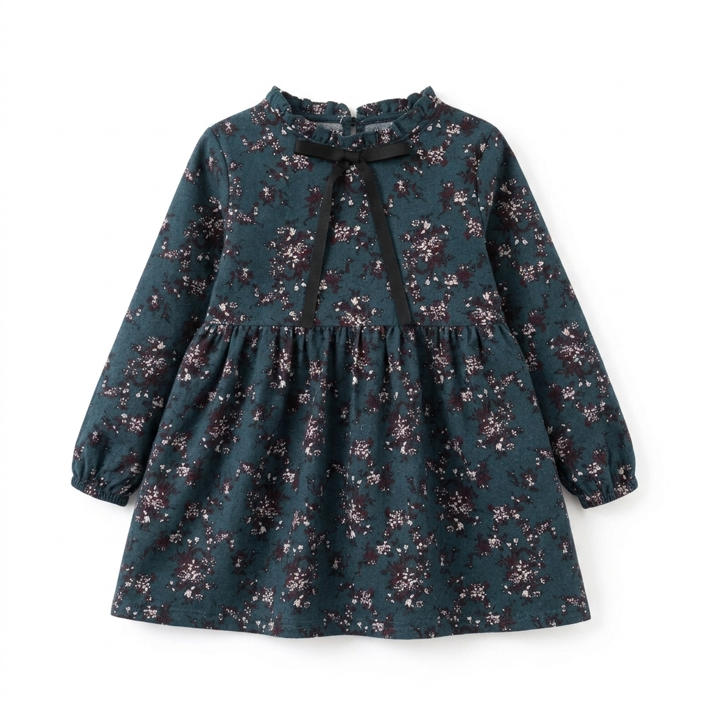 Stylowa granatowa sukienka dziewczęca z delikatnym kwiatowym wzorem to doskonały wybór dla małych elegantek. Klasyczny fason, subtelny print florystyczny oraz ozdobna tasiemka przy dekolcie tworzą ponadczasowy model, idealny zarówno na co dzień, jak i na wyjątkowe okazje.