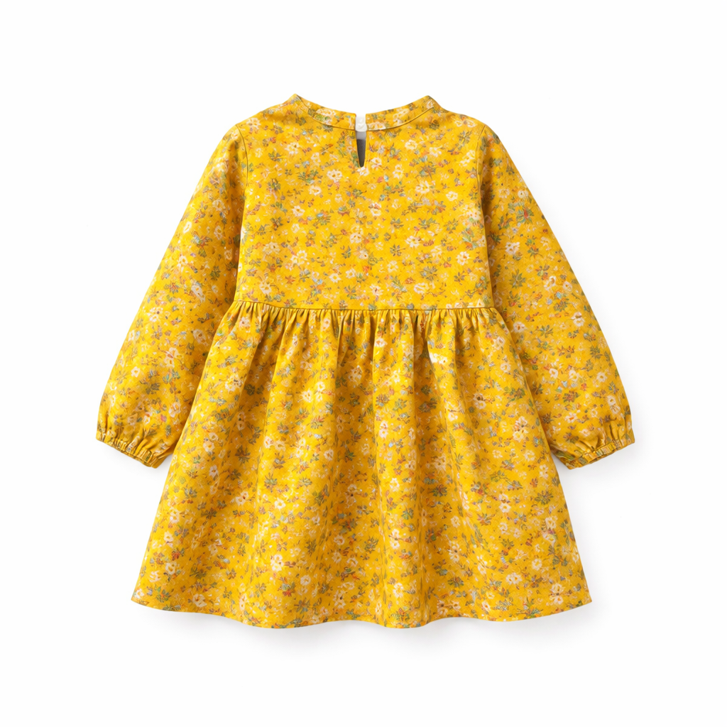Sukienka dziewczęca musztardowa w kwiaty dziecięca z długim rękawem roz.90-150