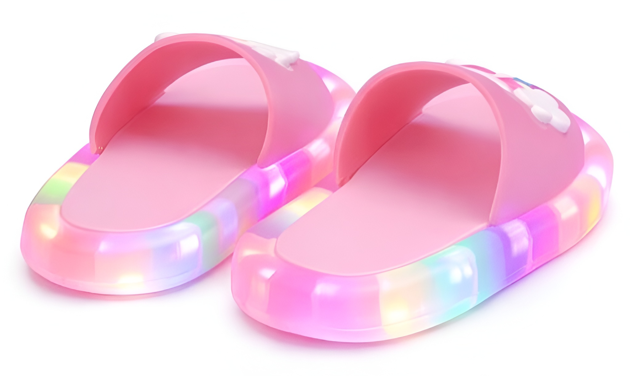 Stylowe i wygodne świecące klapki dziecięce LED Unicorn to idealne obuwie dla najmłodszych miłośników bajkowych motywów. Klapki wyróżniają się efektownym podświetleniem LED umieszczonym w podeszwie, które nadaje im wyjątkowy wygląd i zwiększa widoczność po zmroku. Uroczy motyw jednorożca oraz pastelowa kolorystyka sprawiają, że produkt doskonale wpisuje się w dziecięce trendy modowe.