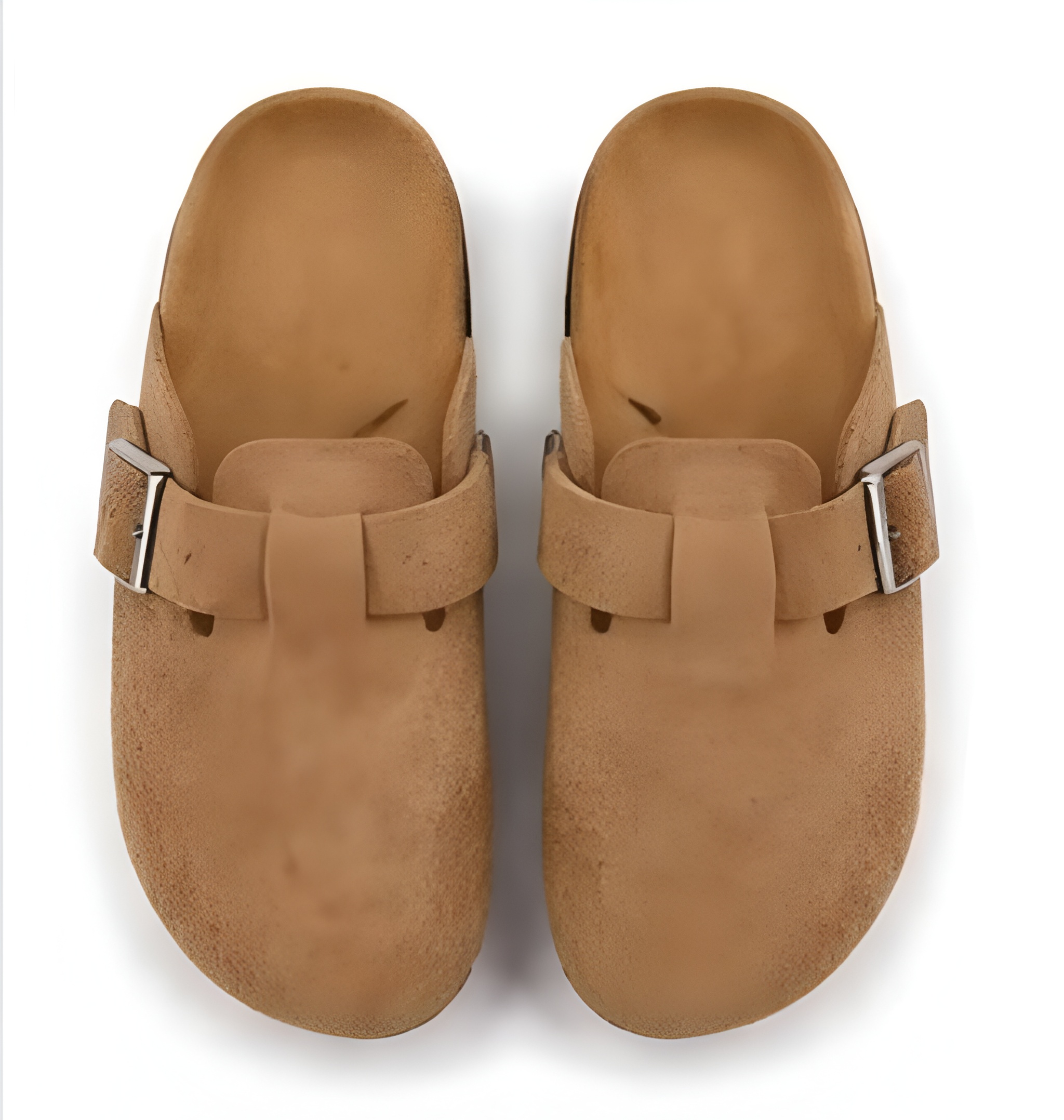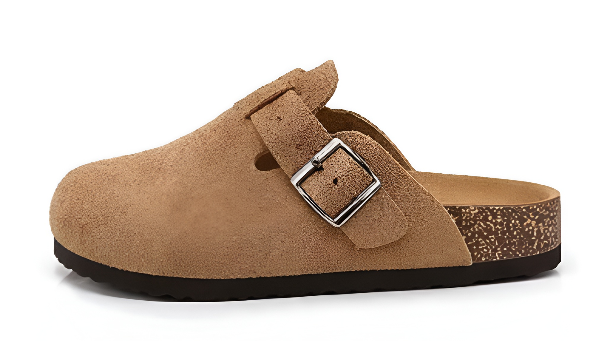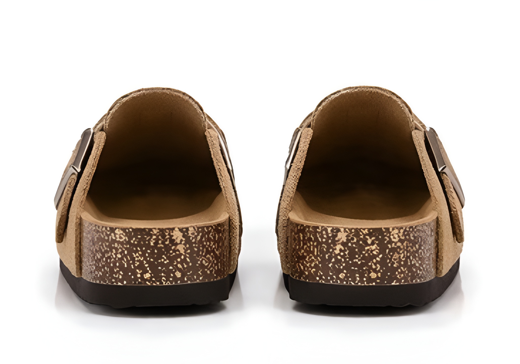 Zamszowe Chodaki Damskie na Korkowej Podeszwie Brązowe Mule z Klamrą